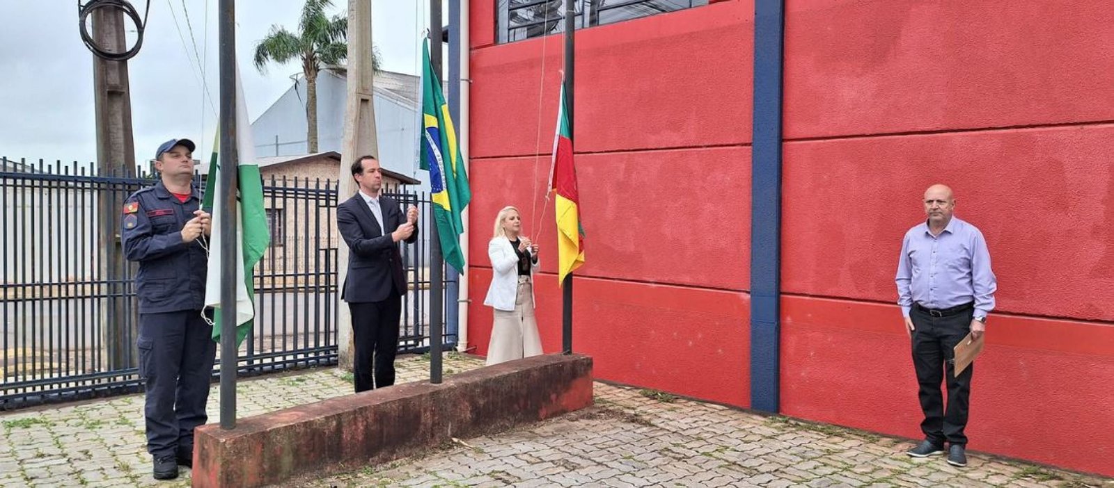 O ato foi realizado na sede do Corpo de Bombeiros. Em paralelo, a bandeira Nacional, a bandeira do Estado e a bandeira do Município foram hasteadas pelo juiz da 2° Vara Judicial, Gustavo Bruschi, pela coordenadora regional, Jogelci do Carmo, e pelo soldado do Corpo de Bombeiros, Mühl.